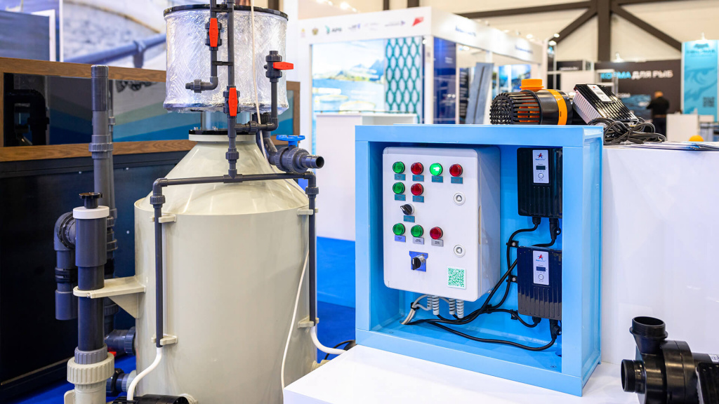 Центральный элемент экспозиции — УЗВ с оборудованием экспонентов, работающая под ограниченной биологической нагрузкой с живой рыбой. В 2026 в связи с развитием проекта таких установок будет уже две.